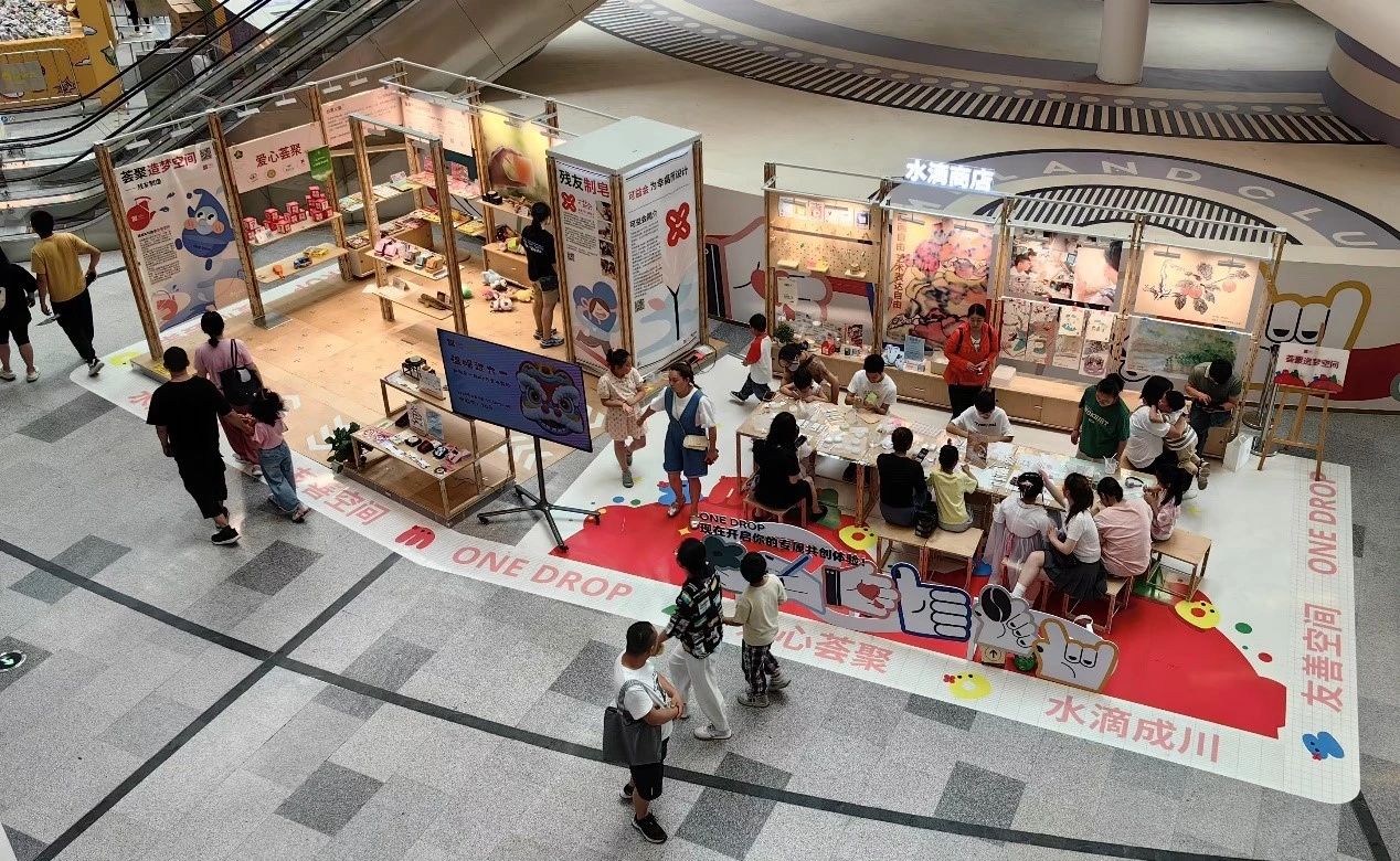 水滴商店(One Drop Store)社会创新项目旨在整合商业综合体的平台资源、大学研究团队的创新能力和公益组织的服务内容,以“商店”形式为载体和平台,通过故事化展示、自助式诚信售卖、参与式体验与价值共创等活动,实现残友、志愿者、市民等人群的多维成长、社区融入和社会影响。