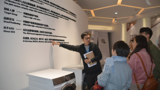 支部成员在小天鹅苗冬经理的带领讲解下一起参观了企业的产品展厅。成员详细了解了从洗衣机的发展历程到目前的企业产品线分布,从国外的产品引进到中国自主研发,从产品造型设计到内部技术创新,从公司独自研发设计到与一流院校深入合作,从企业单独营销到与国际名牌联名推广,从设计师人员配置到具体工作内容说明,从成功产品案例分享到不足产品改进经验以上七个方面的内容。苗冬经理向支部成员介绍了小天鹅公司在洗衣机的设计与研发上所付出的努力、获得的成就,让成员了解到过去洗衣机的发展历程、目前中国洗衣机的设计现状与未来的行业发展空间,启发成员开始重新思考与审视洗衣机这一常见家用产品的设计未来之路。
