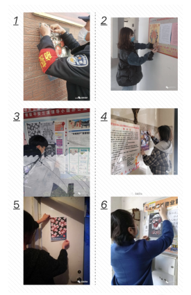 学院青协组织广大同学将前期精心创作的抗疫海报送到社区,帮助基层社区做好疫情防控宣传,和社区工作者肩并肩,以形象明了的视觉语言宣传防疫常识,共同阻击疫情。参加海报张贴的一位同学表示,通过将自己创作的作品从屏幕转入到布告栏前,向社区居民宣传抗疫知识,自己受益匪浅,觉得能够力所能及地为抗疫做点什么是件很幸福的事。同学们还在微博上开启了话题,将自己的活动照片发布到微博上,让更多的陌生人了解、参与、分享此活动,也号召更多的人参与其中,希望让更多的城市点亮战疫之“星”。