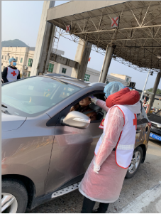疫情无情人有情,学院积极动员学生党员、学生骨干主动配合和参与所在社区、村委会的志愿者工作。在做好防护的基础上,学生志愿者们坚守在道路卡点,在社区街道,在乡村路口,监测体温、发放传单、记录情况,小爱汇成大爱,点滴传递温情。公共艺术1901班费徐珏同学来到杭宁高速湖州南收费站,为每一位过往人员测量体温。环艺1702班江宇琨同学不仅在疫情前线以志愿者身份协助工作人员普查、登记来访人员,还在得知所在村口罩、酒精等防疫物资紧缺后,毅然捐出自己节省的2000元,支援当地防控工作。