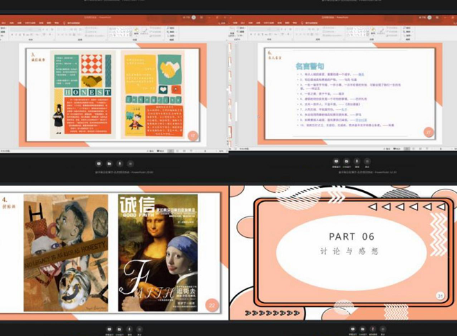 学院各年级、班级立足学院特色与专业优势,积极开展各项主题文化教育活动。学生会资助部开展线上征文海报等作品征集,通过学院公众号进行线上评选、展览,倡导契约精神,增强学生诚信意识;多个班级召开“诚信立人,助学圆梦”诚信主题班会,宣讲诚实守信故事,引导学生内诚于心,立信于行;举办诚信知识竞赛,帮助学生增长相关知识,提高综合素质;开展诚信考试宣誓,引导学生立下自己的诚信宣言,弘扬诚信正能量。