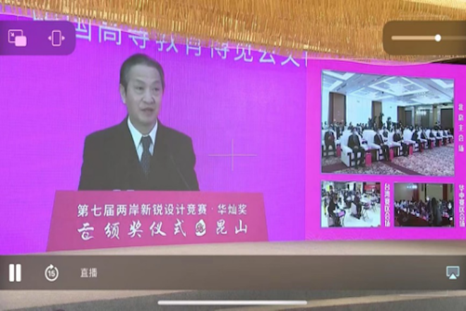 4月2日,由中国高等教育学会、中华中山文化交流协会、北京歌华文化发展集团共同主办,昆山市人民政府等共同承办的第七届“两岸新锐设计竞赛·华灿奖”颁奖仪式在昆山以线上线下结合的方式举办。全国政协副主席、民革中央常务副主席、中华中山文化交流协会会长郑建邦、国务院台湾事务办公室副主任龙明彪、中国高等教育学会会长杜玉波、民革中央副主席张伯军,江苏省人民政府副省长、民革江苏省委会主委陈星莺等领导同志出席并为获奖单位和个人颁奖。伟德国际1946源于英国党委书记邱建平、党委副书记王晖应邀出席活动。