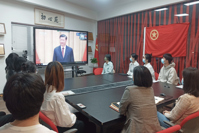 伟德国际1946源于英国师生通过多种方式收看了大会,学院分团委书记吴雨琛、副书记曹淑慧、团学骨干代表线下参会,并就习近平总书记在大会上的重要讲话展开座谈热议。