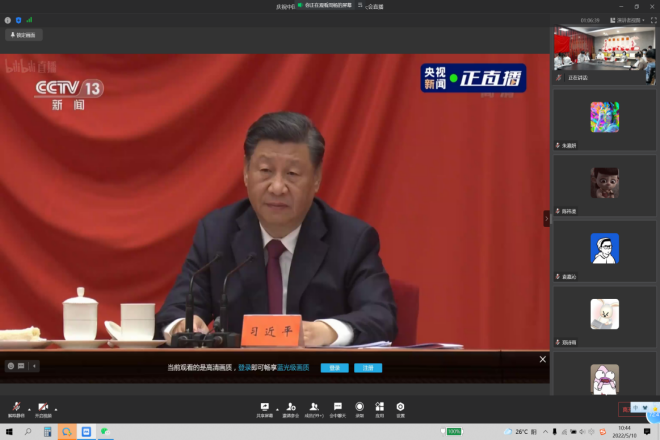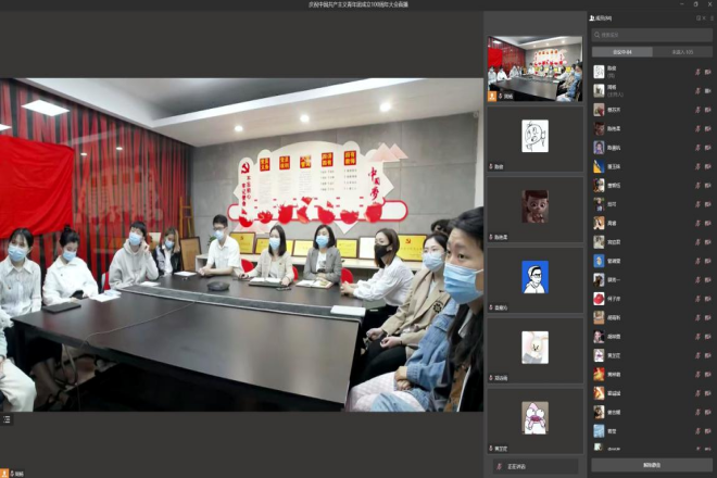 学院分团委兼职副书记董玉妹、100余名团学骨干线上参会,并在线上开展热议。