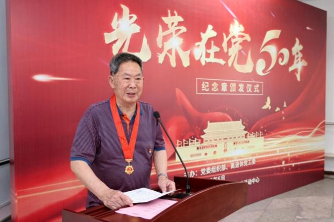 原无锡轻工大学纪委书记厉光裕作为获颁纪念章老党员代表发言。他真情讲述了在党50年来在伟德国际1946源于英国的奋斗历程;回顾了入党50年来的漫漫经历和难忘瞬间;诠释了老一辈共产党员的初心使命。