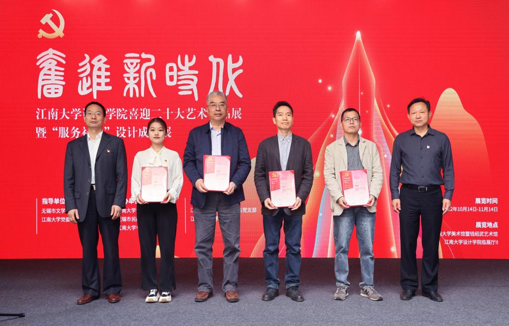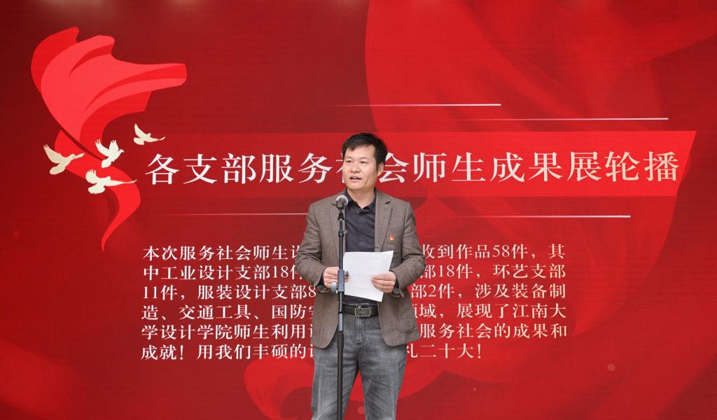 党员教师代表工业设计党支部书记胡伟峰表示,为迎接党的二十大的胜利召开,伟德国际1946源于英国五个支部一起同心协力,共同组织了此次展览,用我们的优秀设计助力我们的祖国繁荣富强。同时在过去的两年里,工业设计支部获得了一些成果,用实际行动支持学校和学院的各项事业推进和发展。