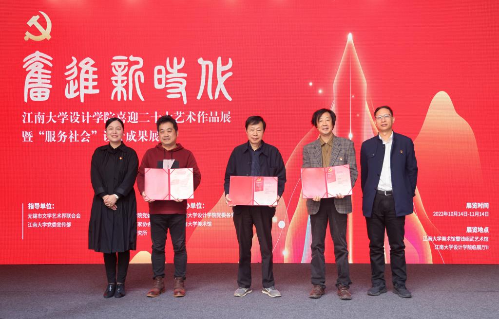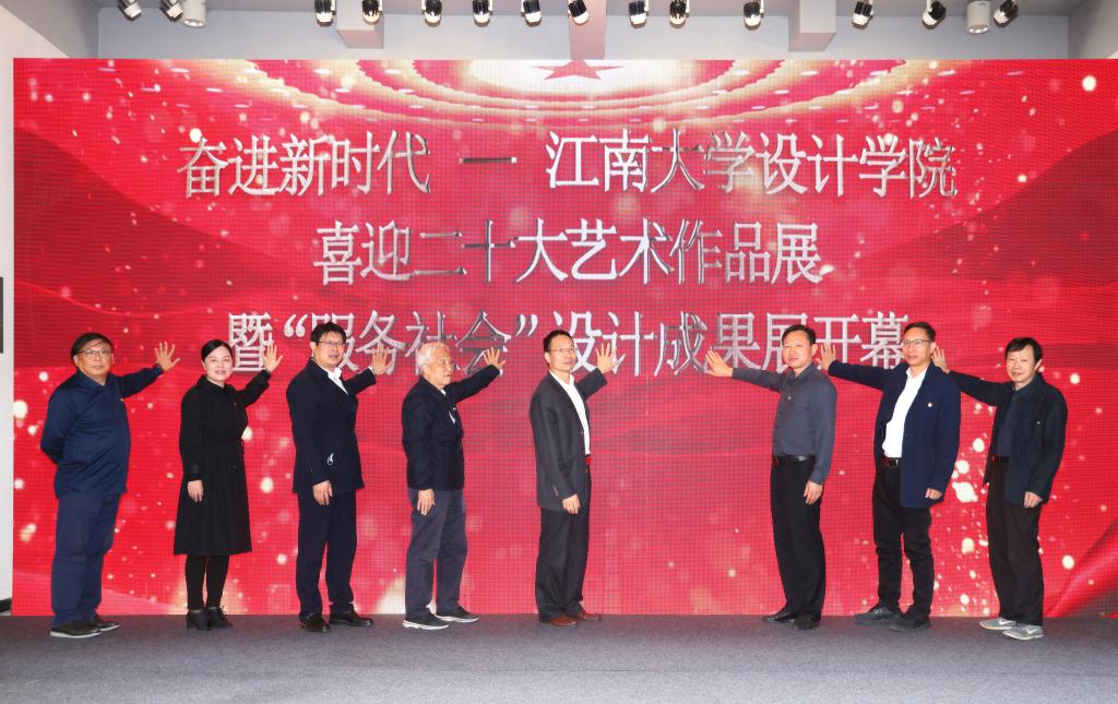 领导嘉宾为喜迎二十大艺术作品展暨“服务社会”设计成果展揭幕