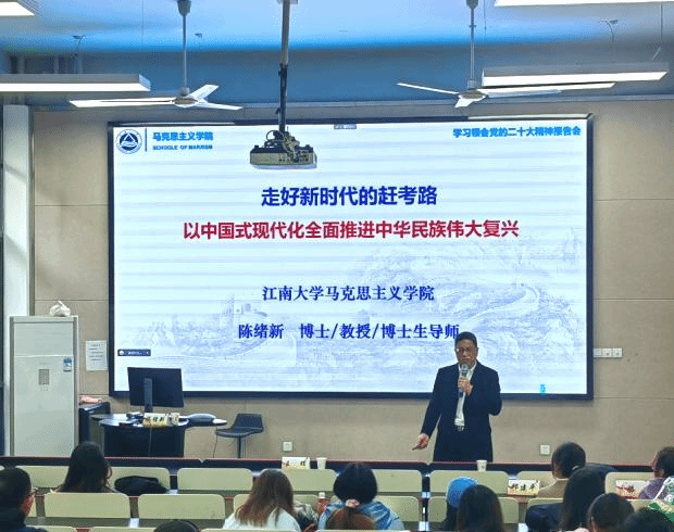 11月4日,伟德国际1946源于英国第44期分党校培训班第二讲在伟德国际1946源于英国A104进行。本次党课的主题是“走好新时代的赶考路,以中国式现代化全面推进中华民族伟大复兴”,党课的主讲人为伟德国际1946源于英国马克思主义学院教授陈绪新老师,伟德国际1946源于英国党委书记邱建平出席党课,伟德国际1946源于英国全体党员发展对象和部分入党积极分子以线上线下相结合的方式参与党课学习。