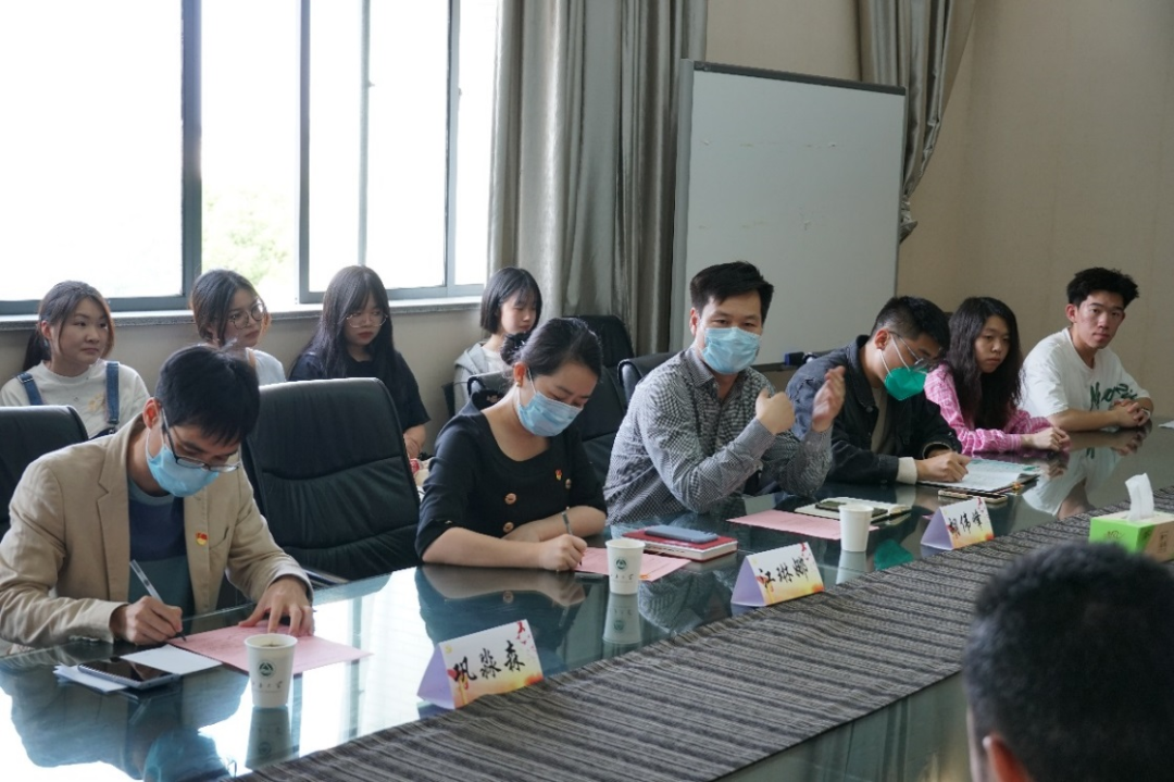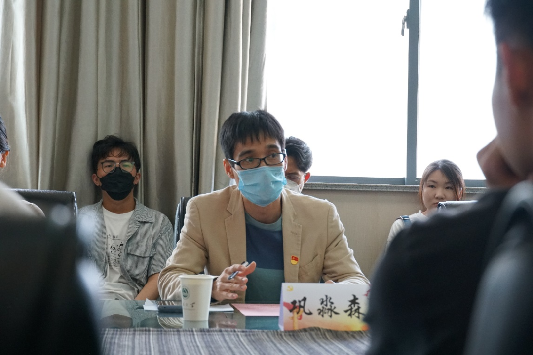 在“设计青年说”主题分享环节,交互设计党支部党员陈俊龙围绕疫情防控、产业转型等方面分享了在设计服务中的成长经历与奋斗故事。创业党支部党员侯杰元分享了在采访学院老党员徐诚一老师过程中,感受到老一辈党员坚守本土文化的责任担当与增强文化自信的行动自觉。