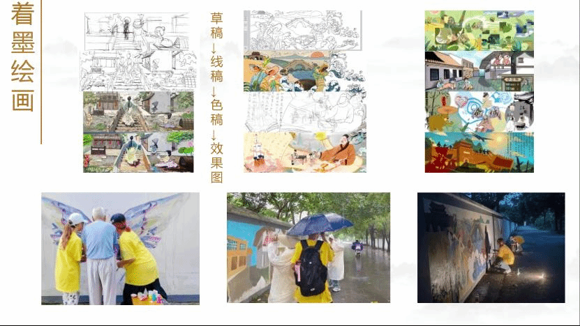 探索设计赋能,聚焦乡村振兴。手绘乡村青春行动分为“环绘‘梅’好” “‘淹’雨春秋” “笔墨挥洒江南情,前瞻设计颂党恩”三个部分传递了乡村文明,用手绘赋能乡村振兴,助力乡村建设。