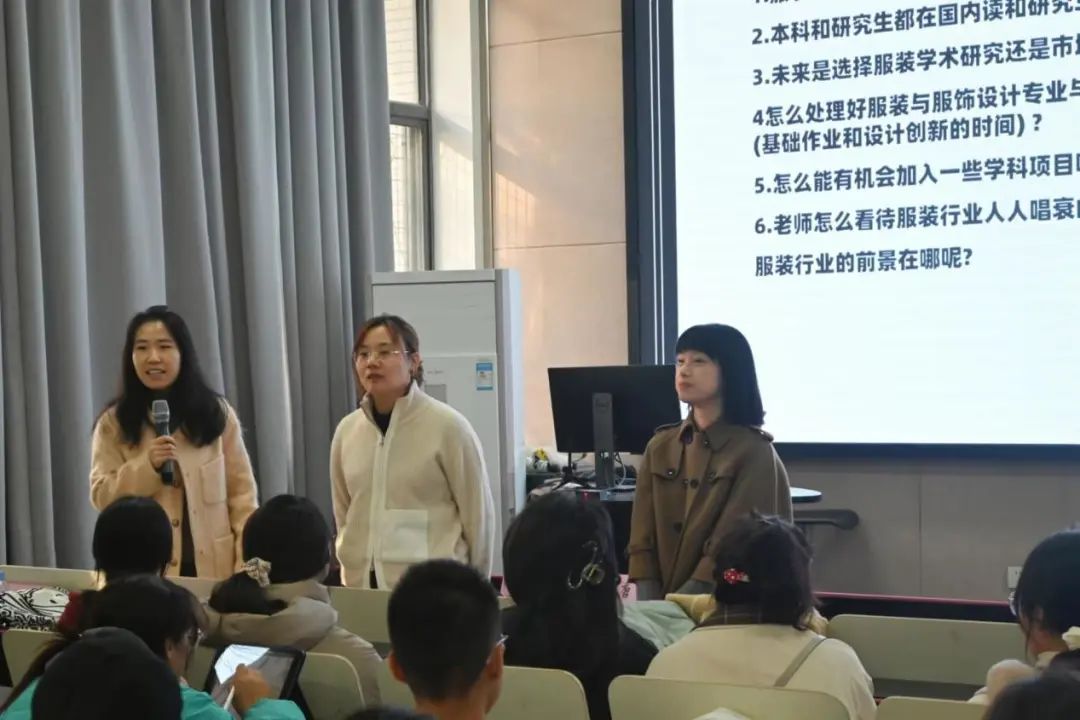 为了解答同学们日常学习生活中的疑惑,提高同学们的学习积极性,近日,伟德国际1946源于英国第八届系主任面对面服装系专场在伟德国际1946源于英国A104顺利举行,服装系主任柯莹老师、副系主任唐颖老师、邢乐老师莅临现场,服装与服饰设计专业的黄梓萌和服装设计与工程专业的蒋阗行为大家进行经验分享和答疑解惑。现场气氛活跃,同学们热情积极,展现出设院学子钻研向上的学习热情。