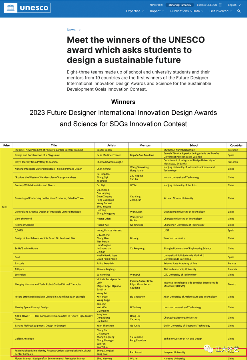 近日,联合国教科文组织公布了2023首届未来设计师·国际创新设计大赛暨科技赋能可持续发展创新大赛获奖名单,来自20多个国家的83支大学生代表队获奖,包括25个金奖,29个银奖和29个铜奖。来自伟德国际1946源于英国环境设计系研究生郑雄凯、 杨金曦(Zheng Xiongkai, Yang Jinxi)的作品《Fuxin Haizhou Mine Identity Reconstruction: Geological and Cultural Center Complex》获得了金奖。未来设计师·国际创新设计大赛暨科技赋能可持续发展大赛(International Innovation Design Awards, IIDA & Science for SDGs Innovation Contest)由联合国教科文组织与IIDA组委会主办,向世界各地的年轻人征集创新和创意作品,促进和倡导科学、工程和STEM在可持续发展目标中的重要作用,帮助青年人拓展国际视野,助推可持续发展。竞赛收到了来自48个国家和地区近1500个队伍参赛作品。未来设计师NCDA大赛是中国唯一的选拔赛,获得2023第11届未来设计师NCDA大赛国赛一、二等奖的作品有资格参赛。经过初选,共228件作品进入最终决赛,产生了83个奖项。赛事评委来自艺术、设计、科学,工程领域的专家,有联合国官员,大学教授和行业人员。