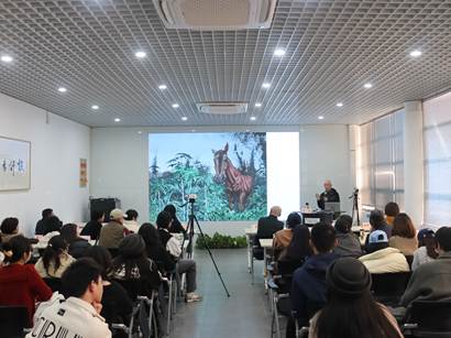 2、讲座内容:陈流老师以《话·画》为题,结合自身经历和创作经验,讲述了《礼赞大地》系列、《浮生若梦》系列、《东奔西走》系列、《葳蕤生香》系列、《炸鱼》系列、《人物创作》等水彩作品。以独特的视觉表达、创作思路、构成形式,展现了“细节”和“质感”在作品中的作用和对表现的意义,注重对细节与质感的传递。陈流老师的艺术语言融合学院派写实艺术与边疆独特的民族艺术传统和地理景观,其艺术思想贯穿古今、融汇中西,将中国传统民间艺术、工笔重彩、中西油画、水彩、壁画、图案、漆画乃至装饰雕塑融入到艺术创作中,彰显不同艺术家之间与众不同的鲜明个性。