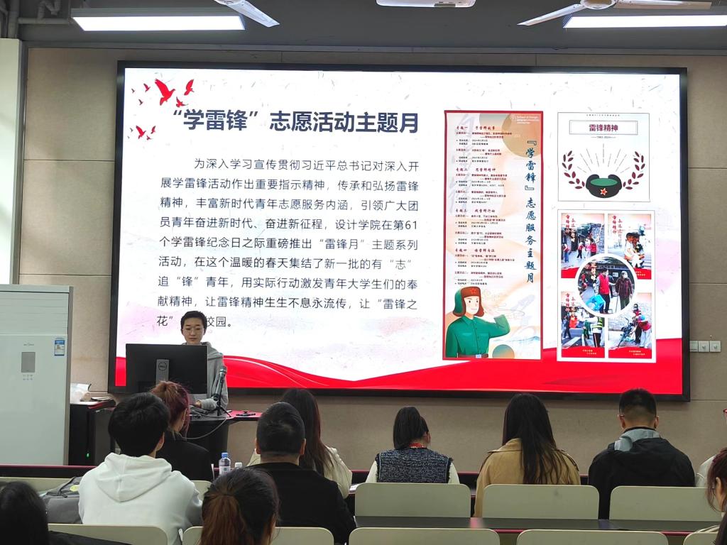 会上,院分团委志愿服务部部长李聪妘带领参会人员共同回顾了伟德国际1946源于英国“学雷锋”志愿服务月系列活动的开展情况和精彩瞬间。活动分为“学雷锋故事”“思雷锋精神”“践雷锋行动”“悟雷锋内涵”四个模块,让雷锋精神在学思践悟中内化于心、外化于行,在全院营造出“人人学雷锋、生生讲奉献”的良好氛围。其中在“春风十里,不如江南有你——执笔追‘锋’”活动中,设计学子化身追“峰”青年,在校园内寻找十余处雷锋精神的化身,用画笔留下了这个春天最美的笑脸,活动受到学校和学院等多个平台的大力报道,点击量破万次。
