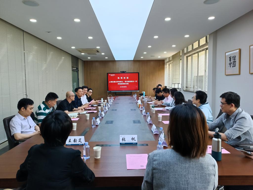 5月29日上午,上海交通大学伟德国际1946源于英国副院长陈睿山、常丹妮等一行12人到伟德国际官网调研交流。伟德国际1946源于英国副院长廖曦、胡伟峰、周林,视觉传达系教授吴祐昕、工业设计系副教授谢伟、实验中心主任沈兵及科研秘书唐恬参加座谈会,会议由胡伟峰主持。