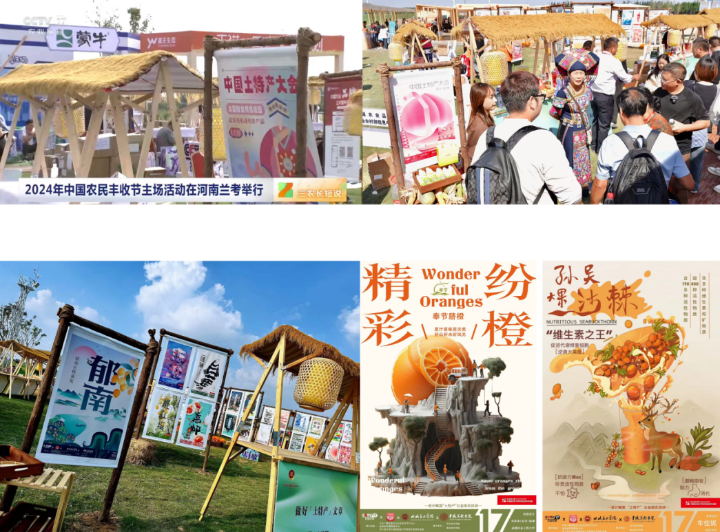 近日,第七个中国农民丰收节的全国主场活动在河南省开封市兰考县举办,现场组织了丰富多彩的群众庆祝丰收联欢活动。值此盛会期间,来自第八届“米兰设计周-中国高校设计学科师生优秀作品展”公益赛道的优秀作品以海报的形式展出,通过艺术的表现形式提升土特产的附加值,让土特产文化得到更广泛的传播和认可。