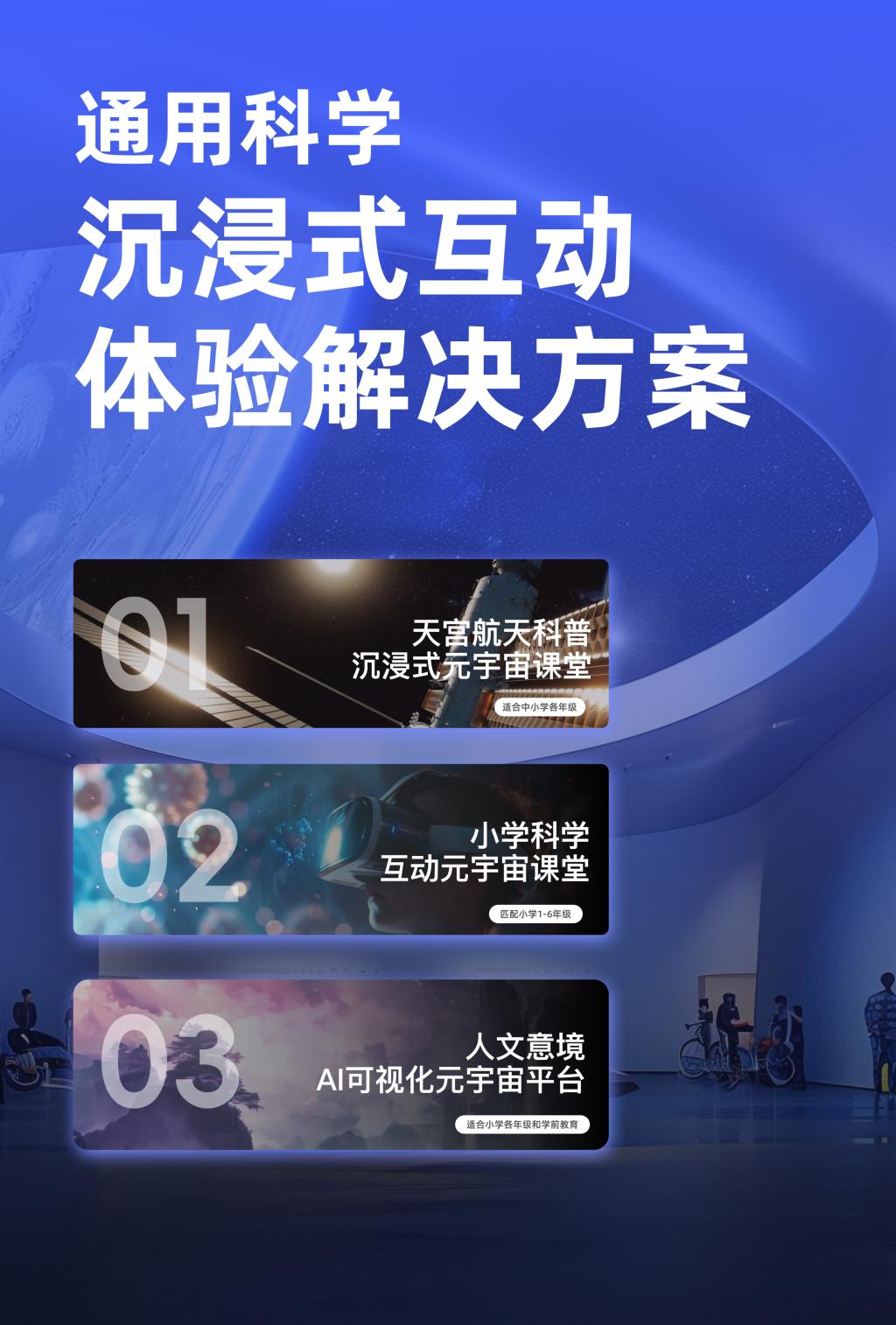 通用科学沉浸式互动解决方案可以一次建设适配多种场景,可应用于航天科普教育、小学科学教育和人文意境教育,以及消防应急演练等多种教育场景。